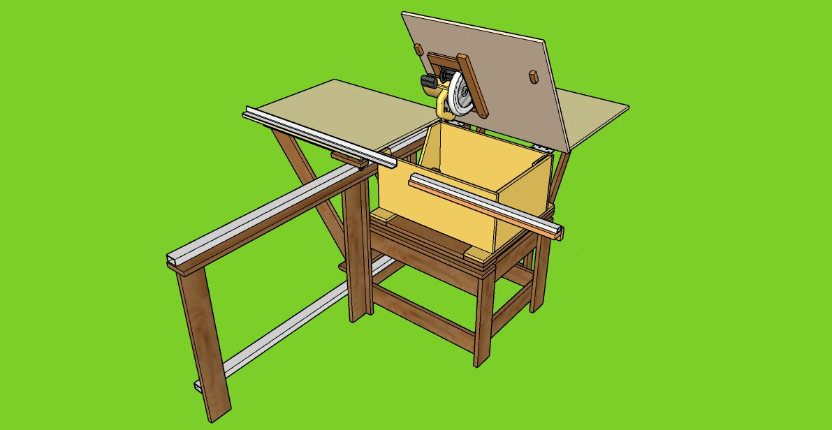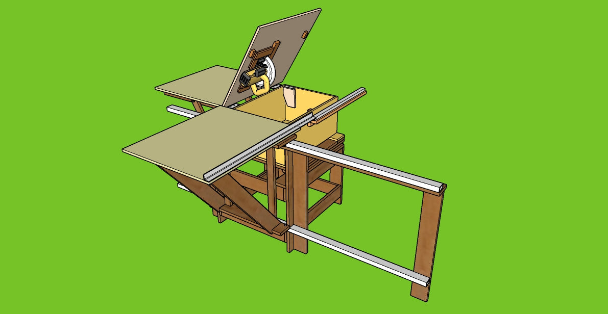 Projeto para esquadrejadeira com serra circular manual 3 com trilhos na vertical
